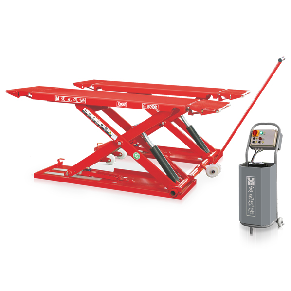 Ultra thin pulley scissor lift apply to small type vehicle for four wheel alignment and maintenance.